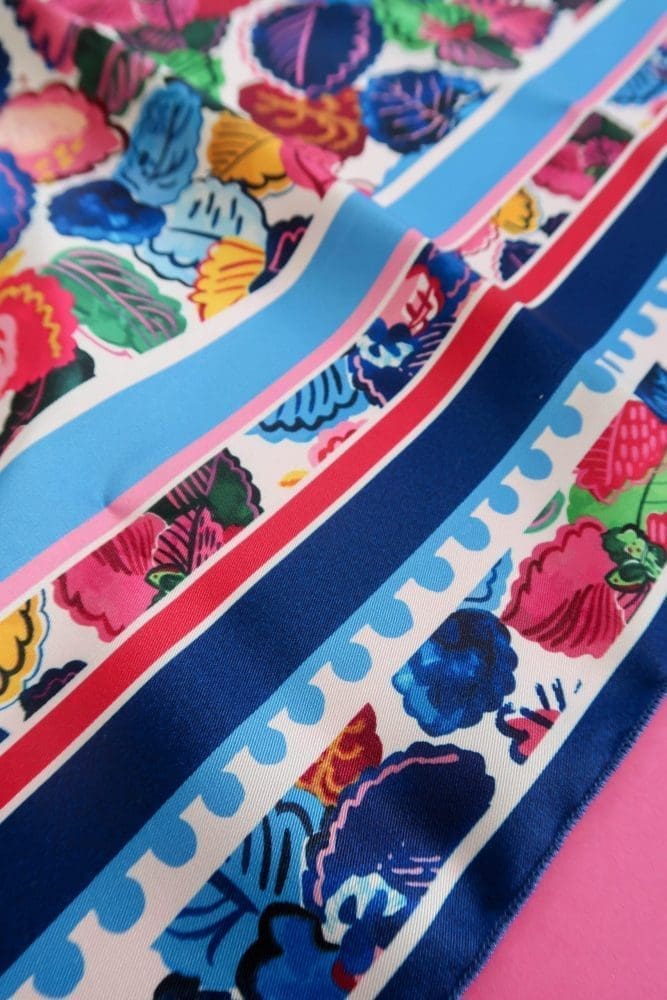 Foulard carré et soyeux dessiné et confectionné à Angers.