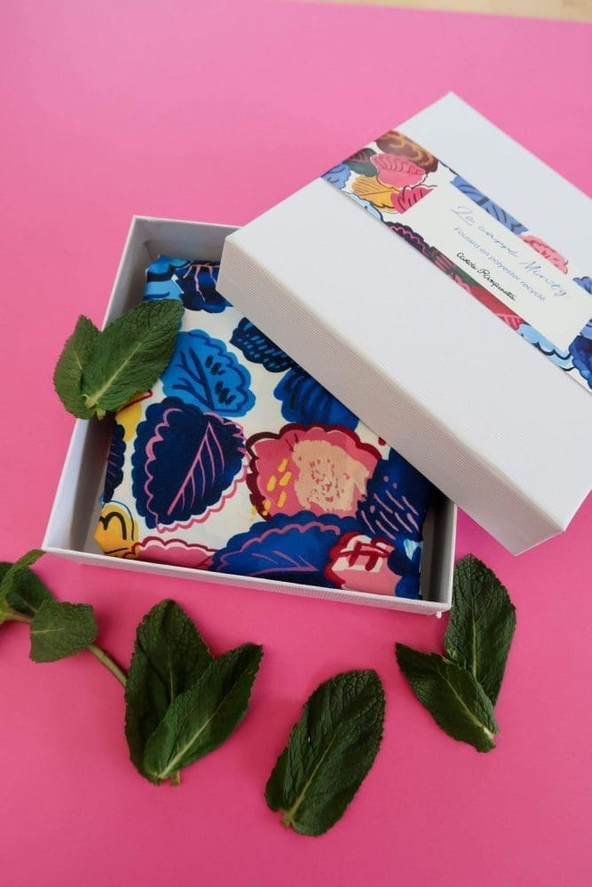 Le motif Minty, peint à la gouache dans mon atelier angevin, est imprimé en France sur un sergé de polyester recyclé.