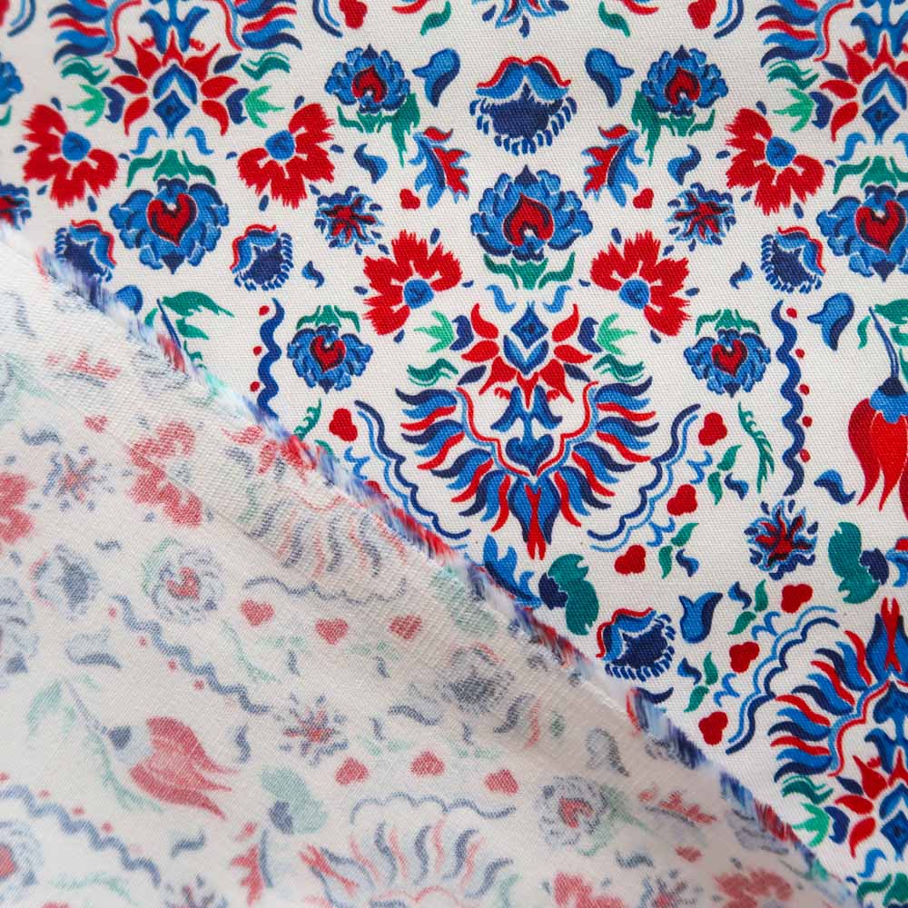 Le motif Istanbul, peint ร  la gouache dans mon atelier angevin, est imprimรฉ en France sur une gabardine de coton.