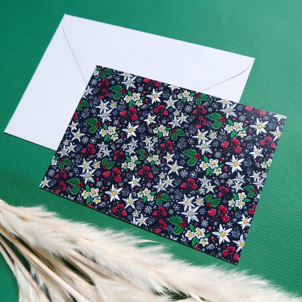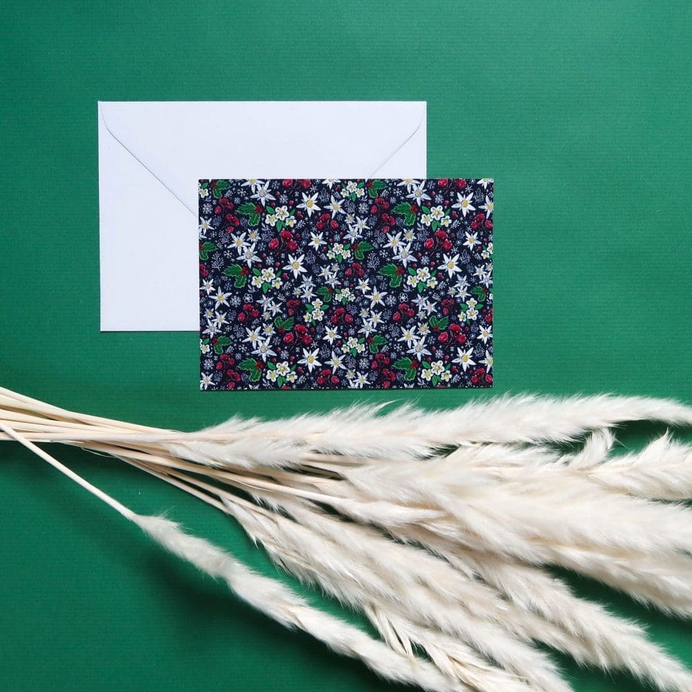Carte postale et son enveloppe, motif « Fleurs polaires »