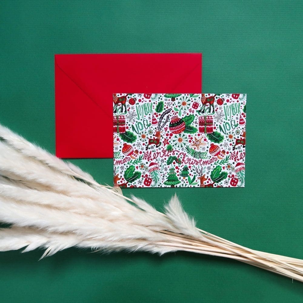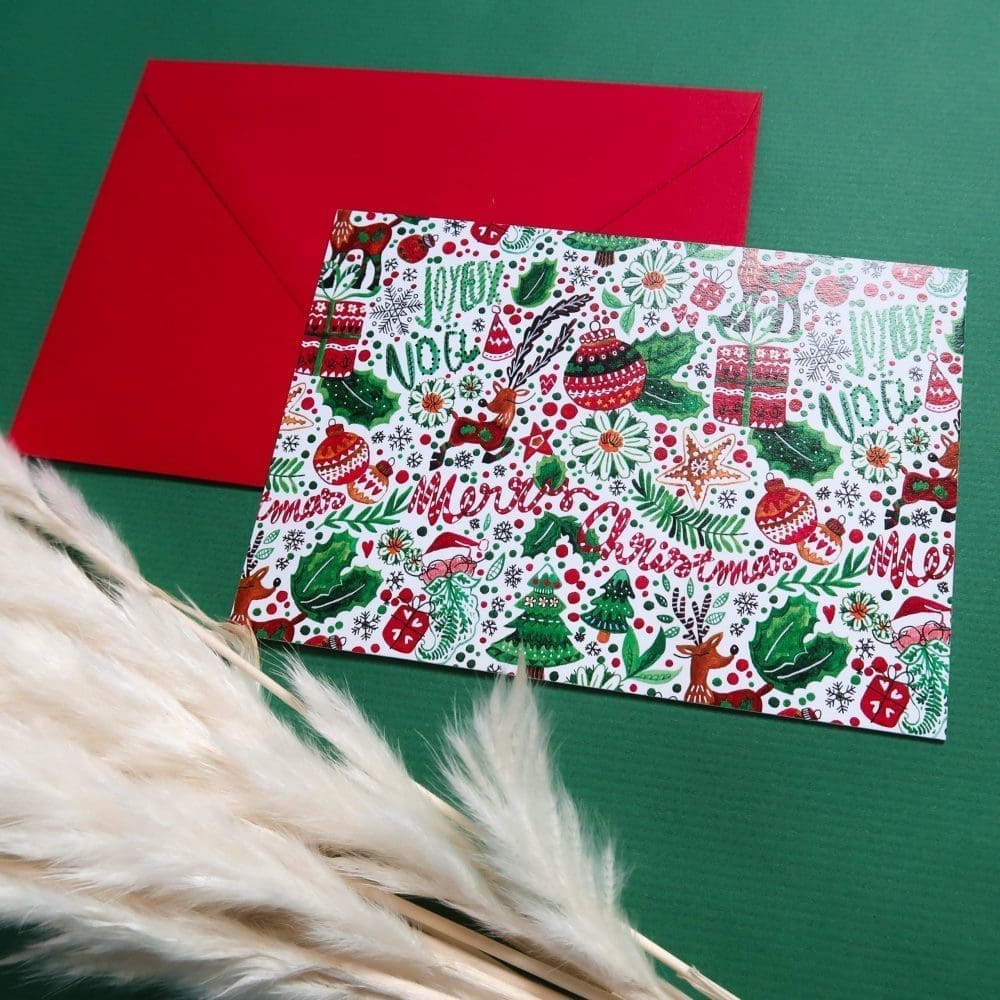 Carte postale et son enveloppe, motif « Merry Christmas »