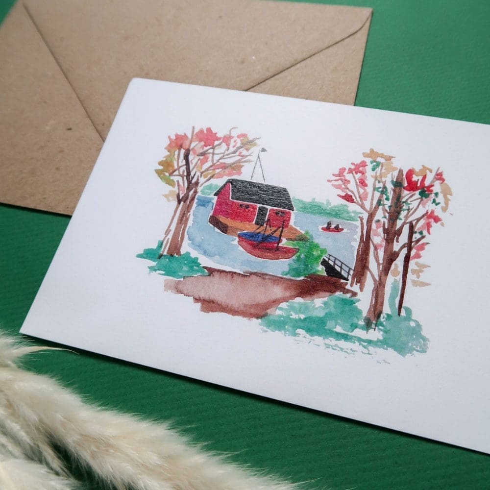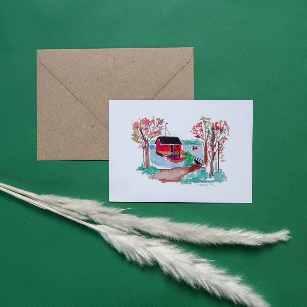 Carte postale et son enveloppe, motif « Stuga »