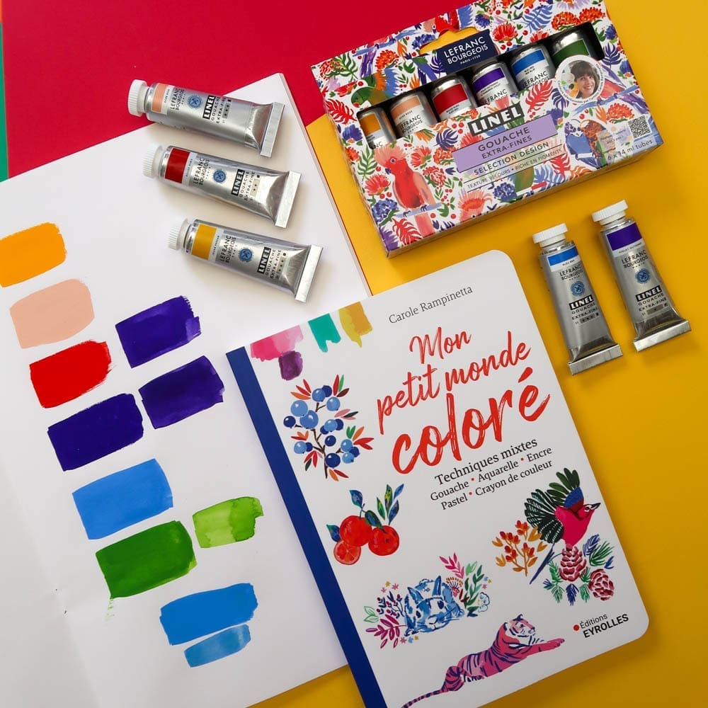Le pack duo : le livre ยซย Mon petit Monde colorรฉย ยป + le kit de gouache Linel