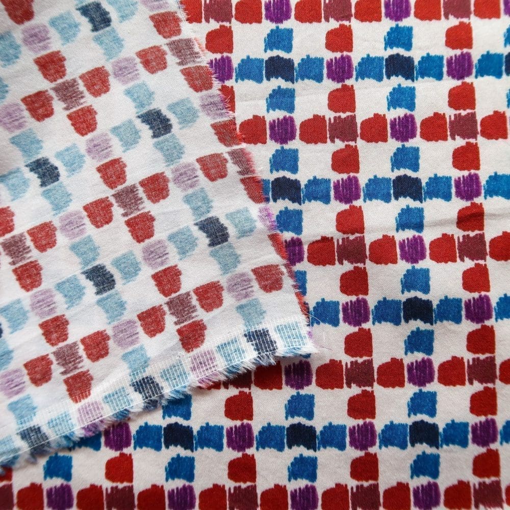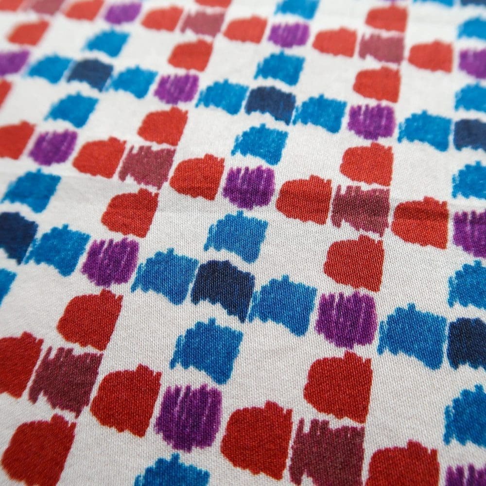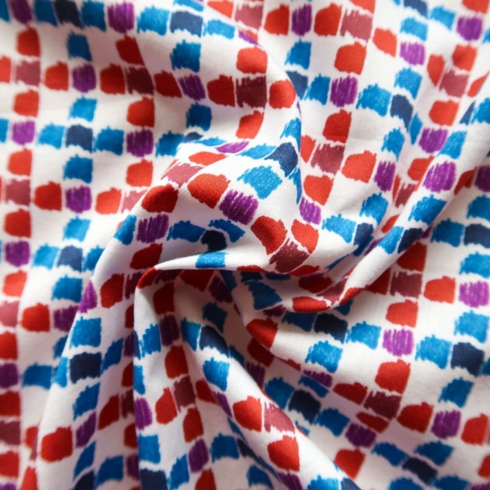 Le motif séyès, dessiné aux crayons de couleurs dans mon atelier angevin, est imprimé en France sur un satin de coton.